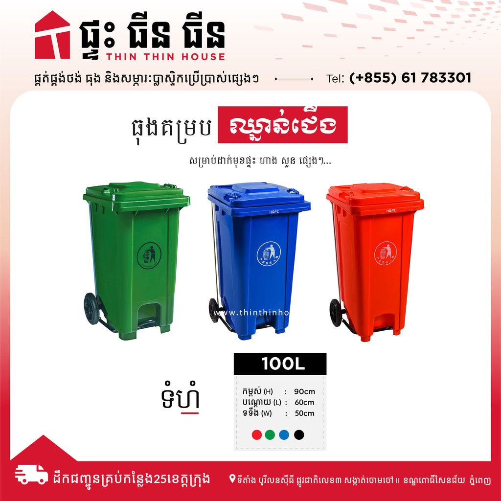 ធុងសំរាម មានកង់ និងឈ្នាន់ជើង